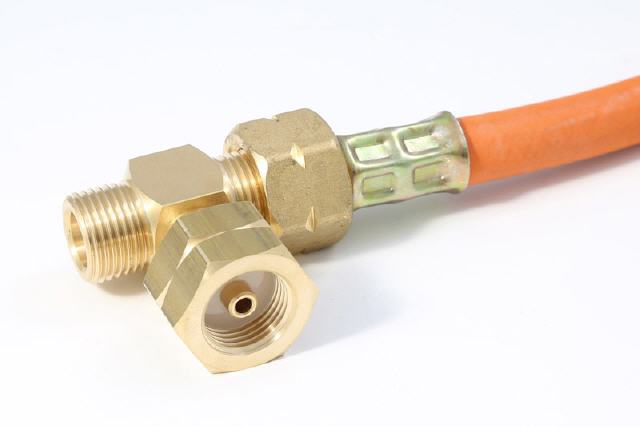 T-Stück mit HD-Gasschlauch (Doppelanschluss).