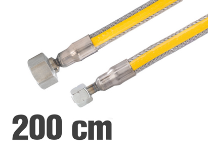 - direkter Anschluss des Edelstahl Wellschlauch (2,0 m) an den Druckminderer und das Gasgerät (R 1/2")