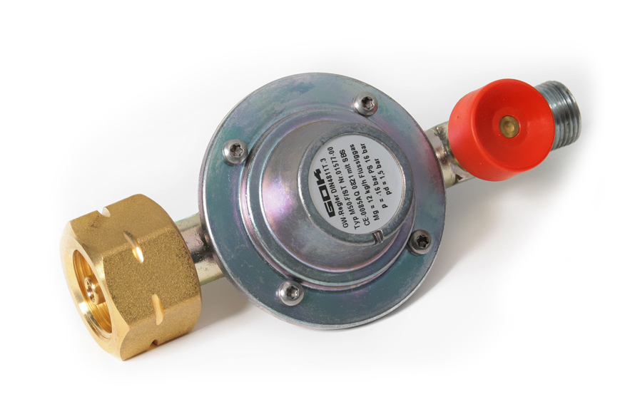 GOK Druckminderer mit integrierter Gas-Schlauchbruchsicherung 1,5 bar oder 4,0 bar/ 3/8".