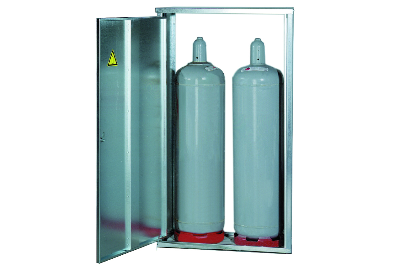Flaschenschrank als Schutz der Flüssiggasflaschen vor unbefugten Zugriff im privaten und gewerblichen Bereich, entspricht den Anforderungen der TRG und der BGV D34.