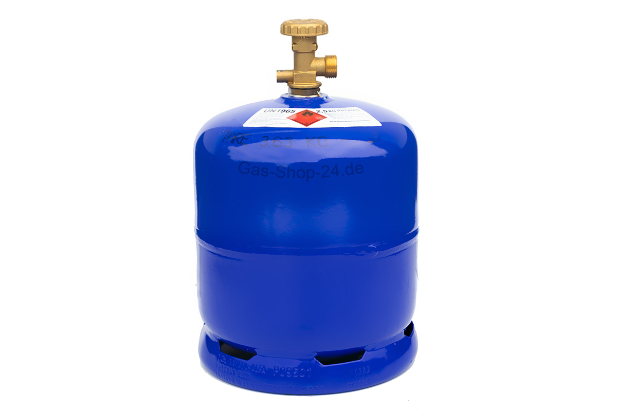Hochwertige neutrale 2,5 kg Propangasflasche mit Flaschenventil als Alternative zur gängigen GAZ R 907 (Butangasflasche).