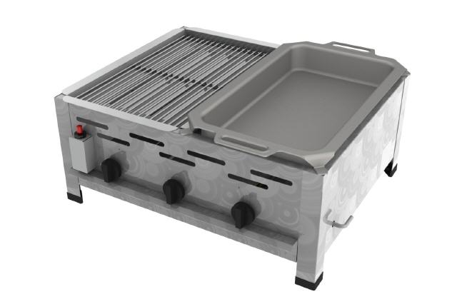 Hochwertiger dreiflammiger Kombi-Gastrobräter (1/2 Grill und 1/2 Bräter) aus Edelstahl mit vielen Zubehörteilen optional lieferbar !!!