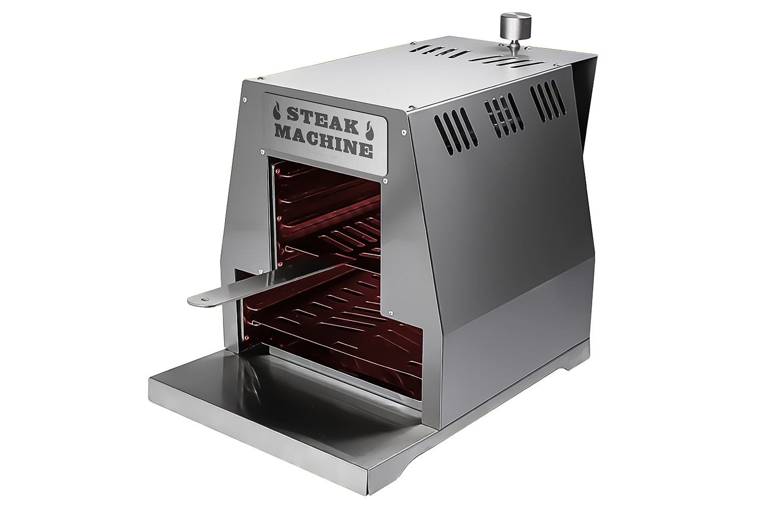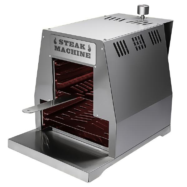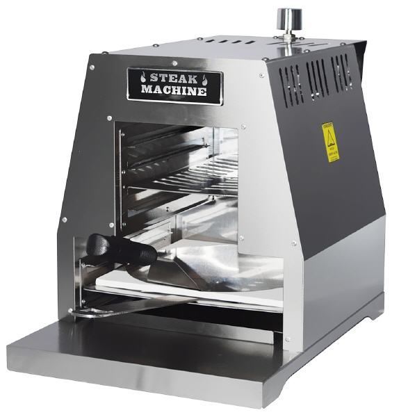 Oberhitzengrill 3,5 kW aus Edelstahl mit Edelstahlroste, Pizzastein, Pizzaheber und integrierter Zündung.