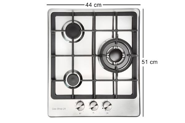 Hochwertiges Edelstahl Gaskochfeld 3 flammig mit Anschlusszubehör