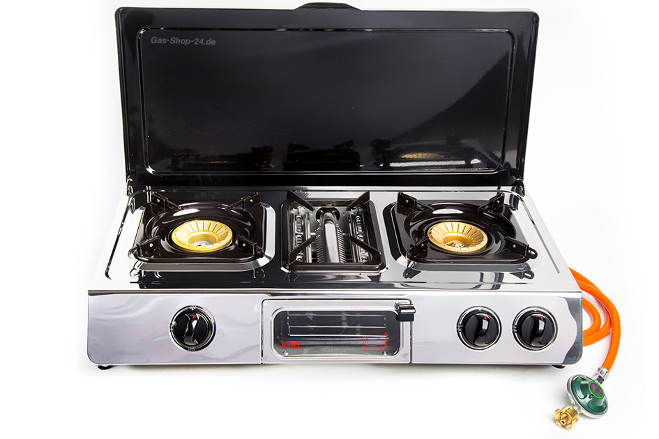 2 flammiger Propan Outdoor Gaskocher/ Wokbrenner mit Gasgrill (Oberhitzegrill)