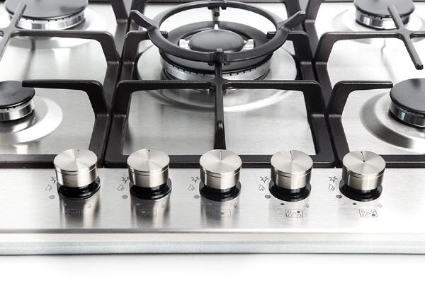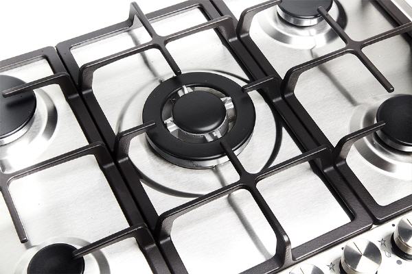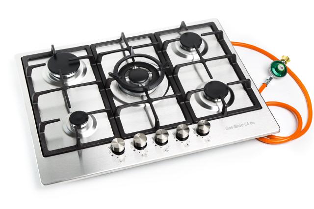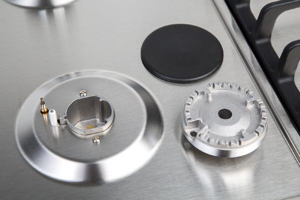 Edelstahlgaskochfeld mit Gusstopfträger, Gussbrennerdeckel
