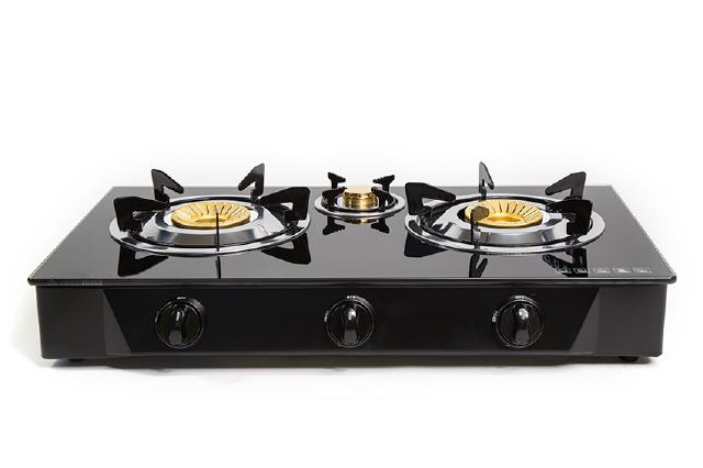 Hochwertiger 3 flammiger Propan Outdoor Gaskocher/ Wokbrenner mit Glasoberfläche sowie Zündsicherung und Piezozünder neuster Generation .