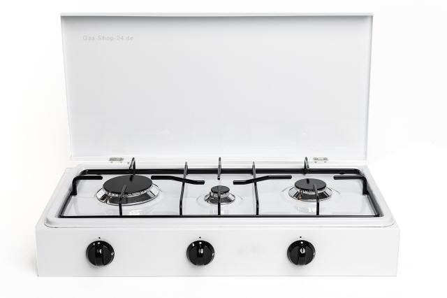 Hochwertiger Haushaltskocher mit 3 Kochstellen und Zündsicherung.