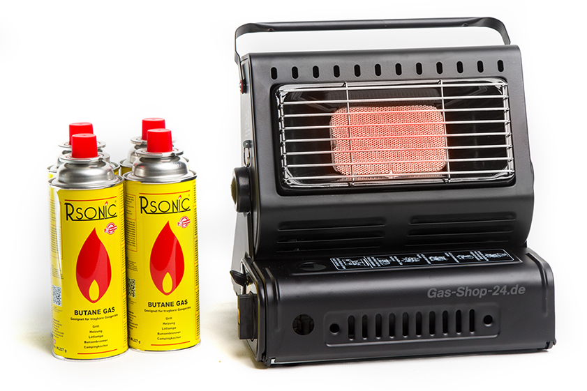 Infrarot-Gasheizer 1.300 W inklusive 4 Stück Gaskartuschen.